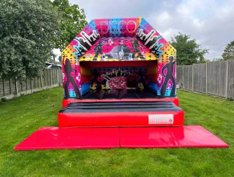 This disco theme bouncy castle can also be hired disco ready with a light and speaker (see disco dome section of our site for details)